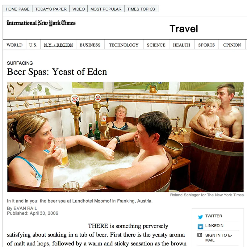 But bathing in beer is much more than just a fantasy made real. During the last decade, a pack of beer spas have opened in the hills and lowlands of Austria, Germany and the Czech Republic, promising health, wellness and the chance to bathe in your favorite suds.