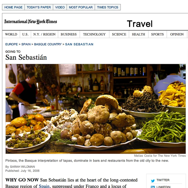 WHERE TO EAT San Sebastián says it has more Michelin multistarred restaurants per square kilometer than anywhere else in the world. It is therefore known for the most expensive, most gourmand, most inaccessible repasts and the least: pintxos, the Basque interpretation of tapas, dominate in bars and restaurants from the old city to the new.